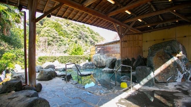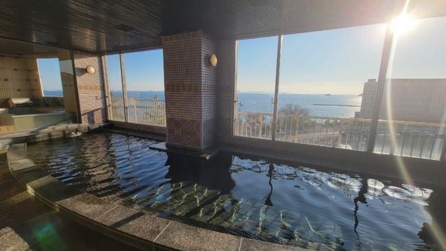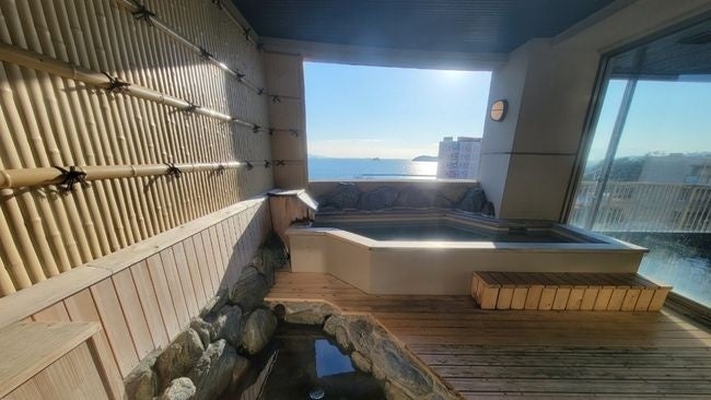 こちらは大きな広々とした内湯からも、解放感あふれる露天風呂からも渥美半島の山々が織りなす絶景を一望することができます。