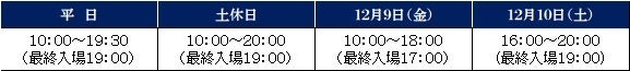 | 【開催時間】11:30/13:00/14:30/16:00(各回約15分) ※12月10日(土)は短縮営業のため、16:30の1回開催となります。 |