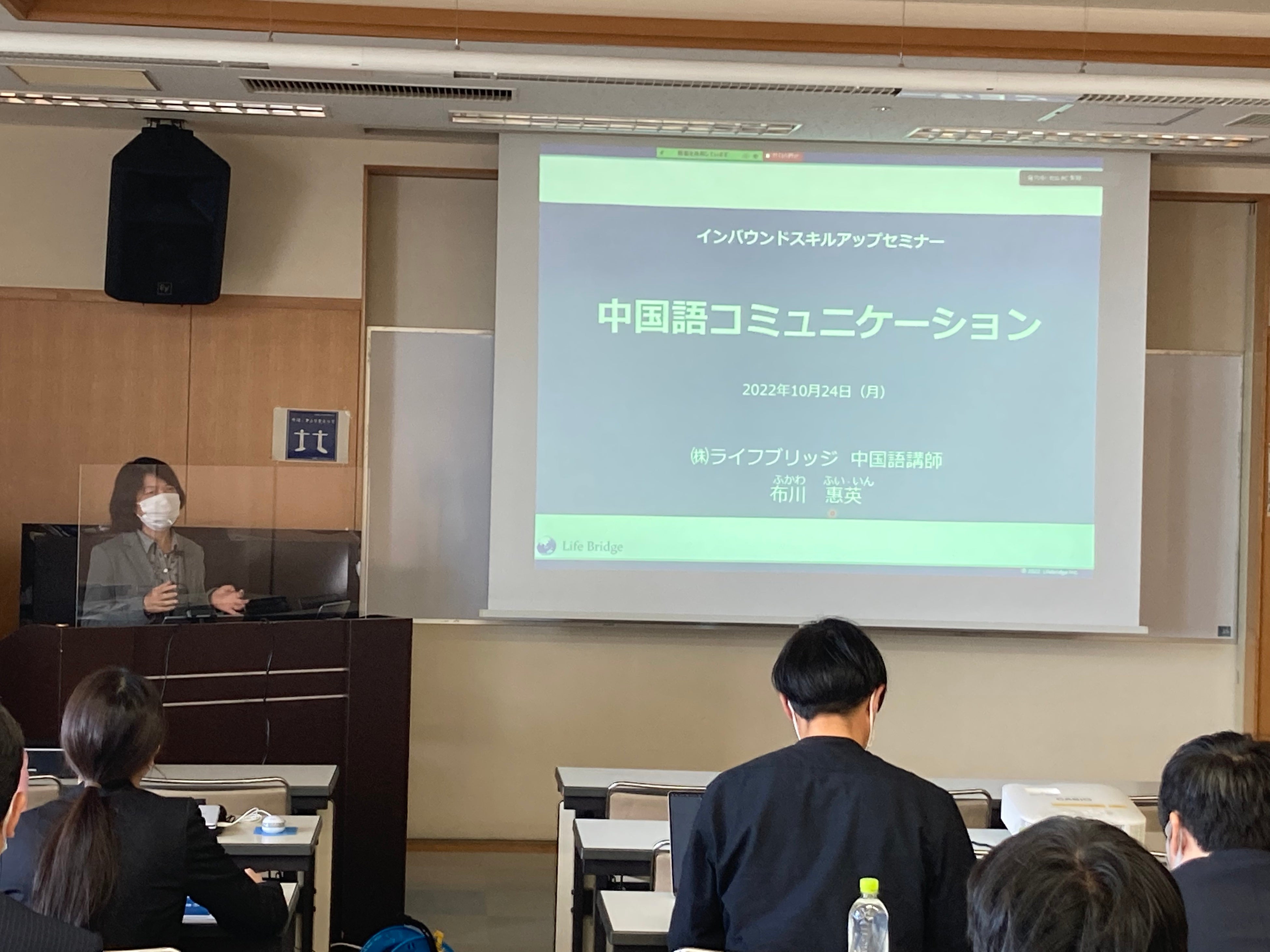 (株)タナベコンサルティング北海道支社 矢野裕之氏を講師・コーディネータとして、前半は「観光・ツーリズムのキーワード」をテーマに、「持続可能な観光」「アドベンチャー・ツーリズム」等の講義を行い、後半はゲスト講師の(株)ライフブリッジ 布川氏の中国語講座を行いました。訪日客への理解と心構えに関する講義の後、すぐ使える基礎中国講座や簡単なカタカナ接客コミュニケーションについて、参加者の皆さまが実際に発音をしながら学んでいきました。