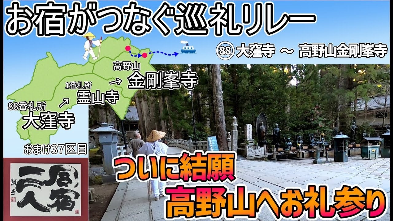 弘法大師・空海の修行の道、四国遍路。コロナ禍で県をまたいでの移動が難しくなり、お遍路さんも激減しました。そこでコロナ収束祈願を掲げた、遍路宿などお遍路を支える地元の方々による、リレー形式のお遍路を企画しました。その様子を少しずつYouTubeに掲載していましたが、この度リレー最終日の動画を公開いたしました。徳島の1番札所から香川の88番札所、高野山への参拝まで、37日間の軌跡をご覧いただけます。