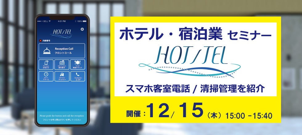 設置、維持に高額な費用がかかる従来の客室電話機やPBXに代わる新たなクラウド客室電話システム「HOT/TEL(ホッテル)」についてのオンラインセミナーです。