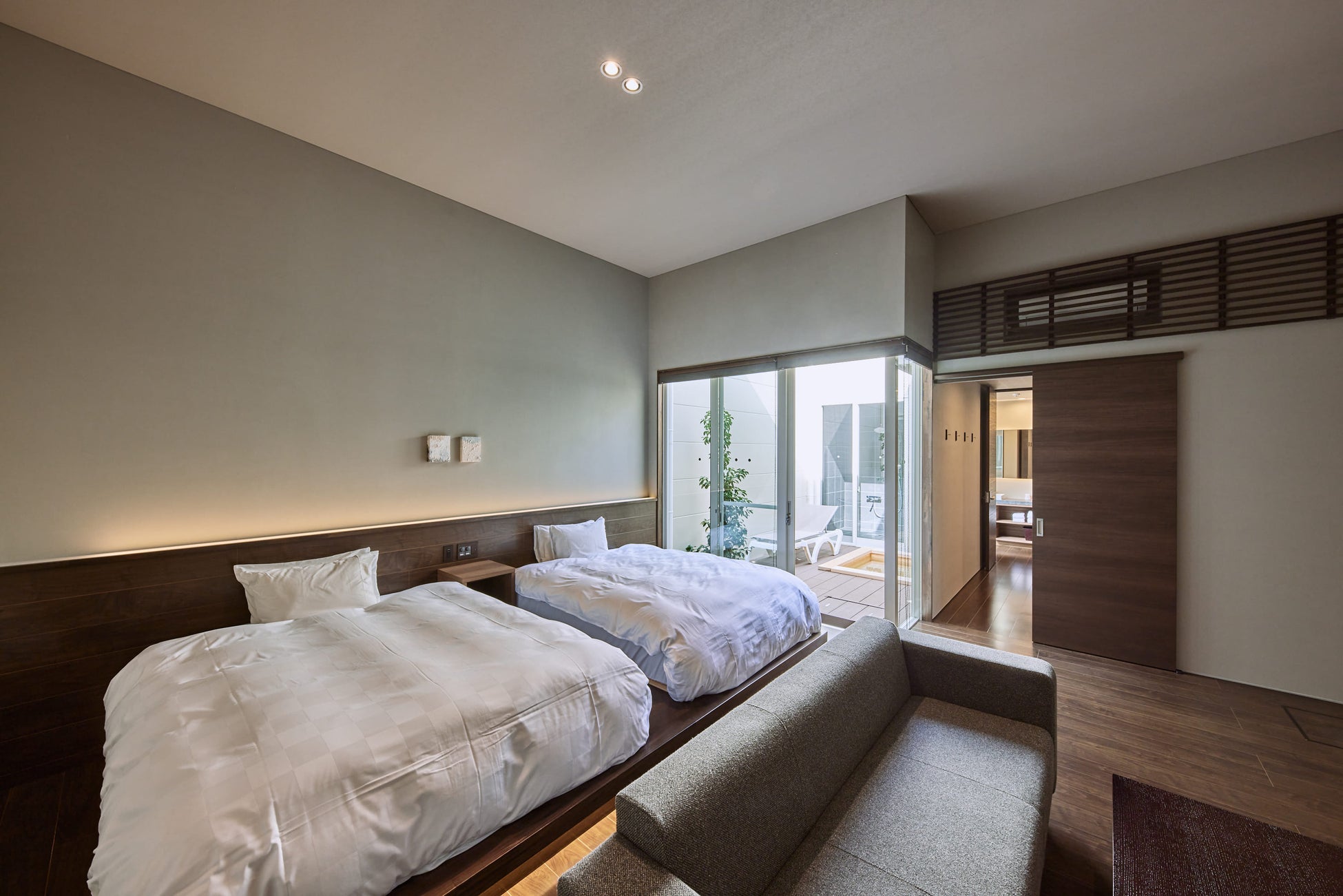 【客 室】リビング、ベッドルーム、トイレ、シャワールーム、専用露天風呂