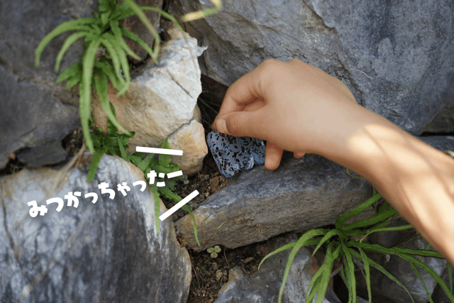 隠す人は自然をよく観察しながら、MIKKEをカモフラージュさせる。