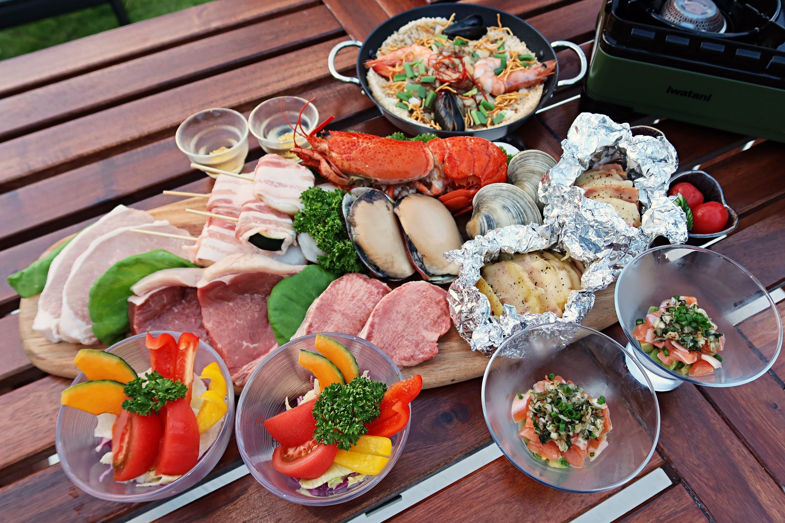 非日常のプライベート空間と共に楽しんで頂くのは厳選した食材、キャンプ感も楽しめるこだわりのBBQ。