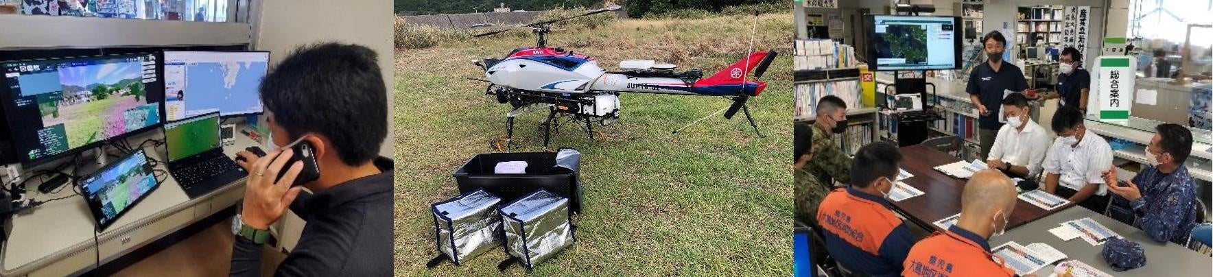 災害時を想定し、ドローンの空撮による被災状況の把握、および救援物資の空輸を担いました。
