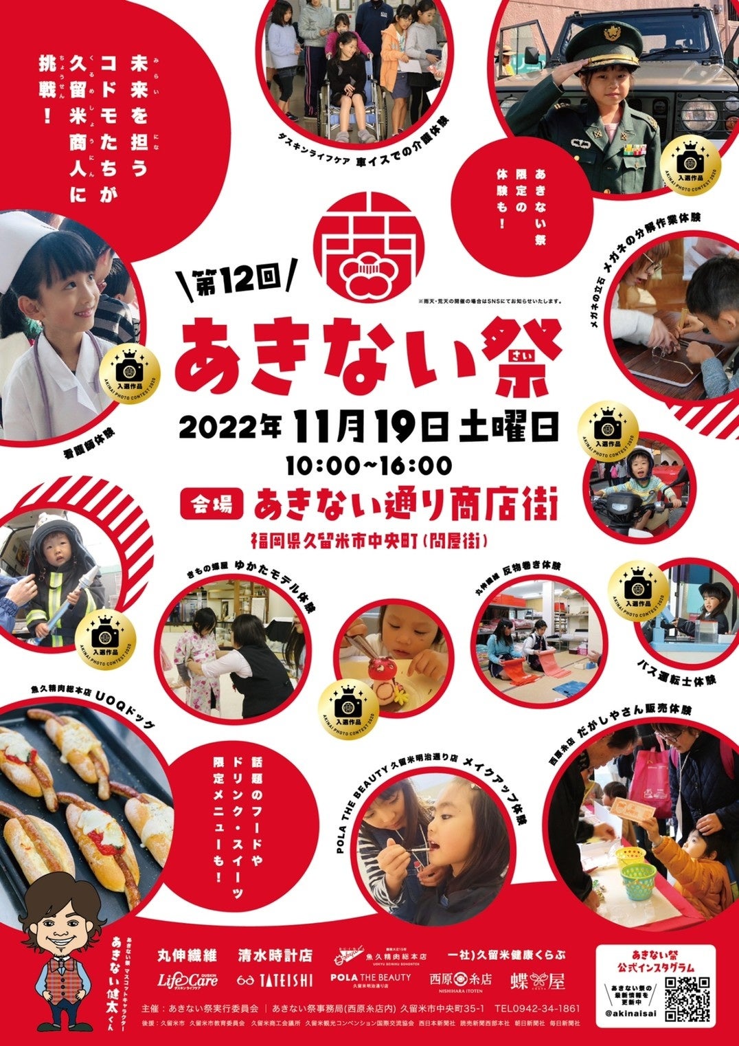【第12回 あきない祭】を2022年11月19日(土)10:00-16:00、あきない通り(久留米市中央町)にて開催します。