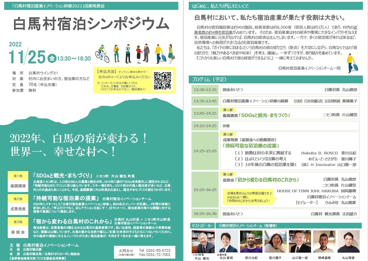 その3年間の議論の成果とこれからの展開について発表し、白馬村村長・ニセコ町長を迎えてその内容について共に議論いたします。
