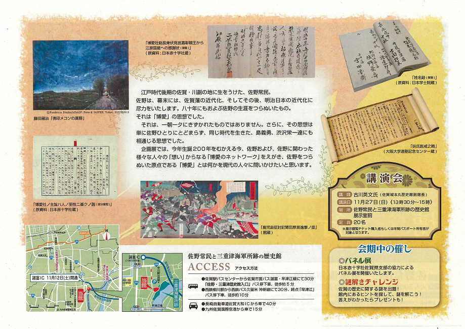 主催共催:(主催)佐野常民と三重津海軍所跡の歴史館(共催)佐野常民顕彰会
