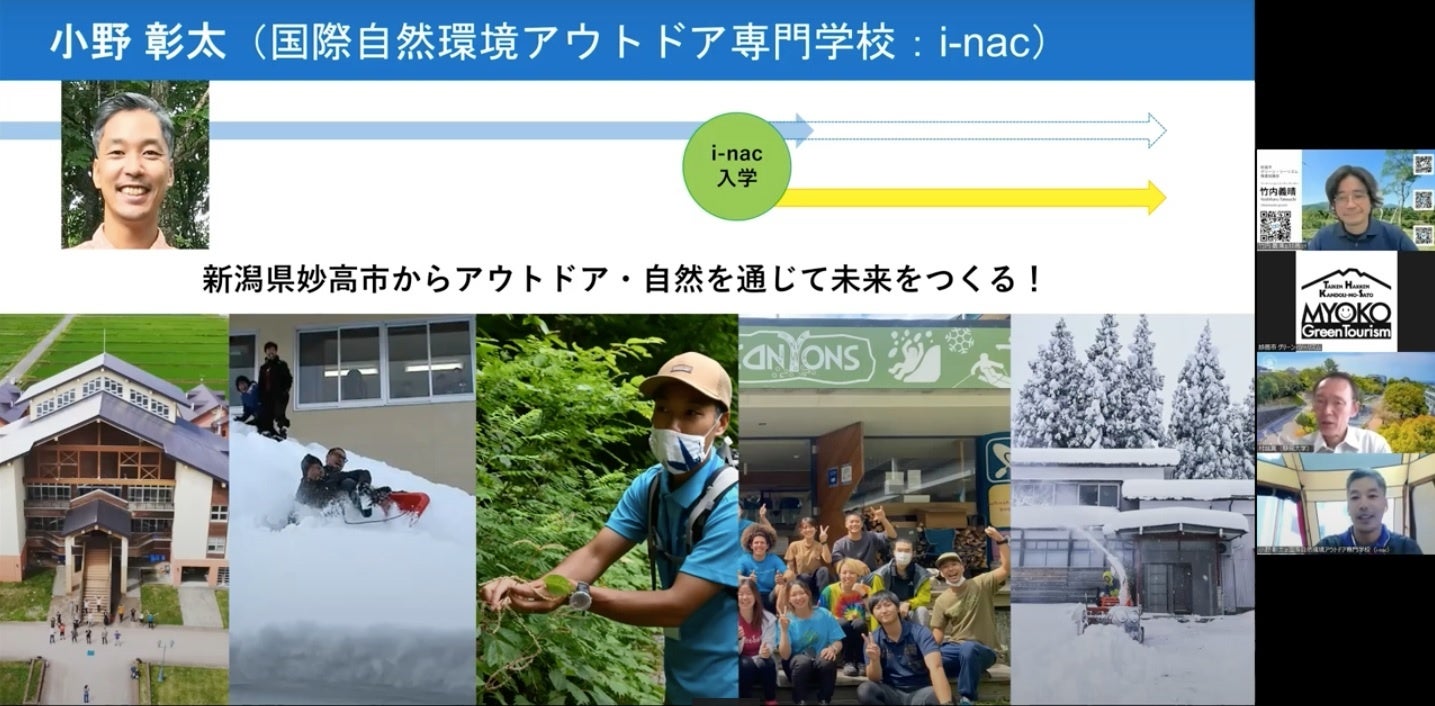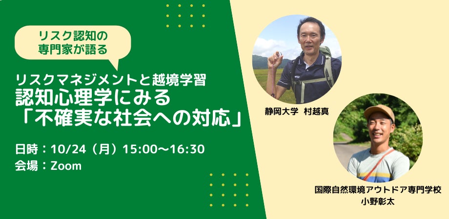 NSGグループの国際自然環境アウトドア専門学校(新潟県妙高市、以下「i-nac」)の教員である小野(アウトドアプロインストラクター学科学科長)が、10月24日(月)に開催されたウェビナー「リスクマネジメントと越境学習 認知心理学に見る『不確実な社会への対応』」に登壇致しました(※1)。