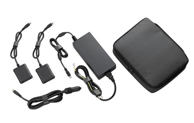 また、より短時間で本体を充電できるよう、本機に同梱している付属アダプターを専用オプション「BH-AD15」として同時に発売します。本機に装備している2つのDC入力端子に、付属アダプターと「BH-AD15」を同時に接続することにより、充電時間を約6.5時間から約3.5時間に半減することが可能です。
