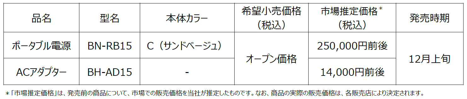 株式会社JVCケンウッドは、JVCブランドより、ポータブル電源のハイパフォーマンスモデルとして、「BN-RB15」を12月上旬より発売します。