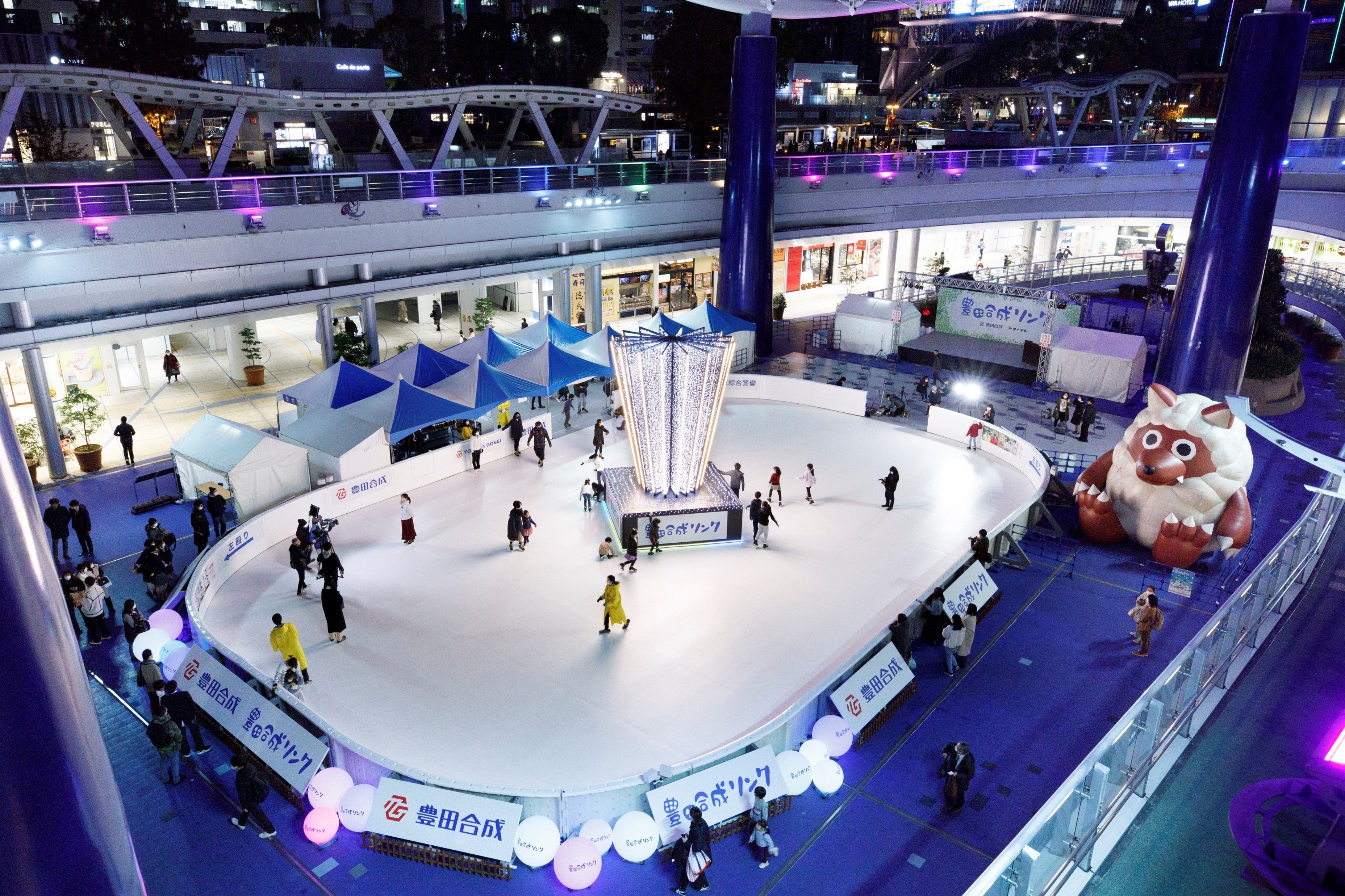 「豊田合成リンク」のオープンを記念したセレモニーを開催!ものまね芸人の原口あきまささんをゲストに迎え、イルミネーションを一斉にライトアップします。原口あきまささんによるスケートパフォーマンスも!?