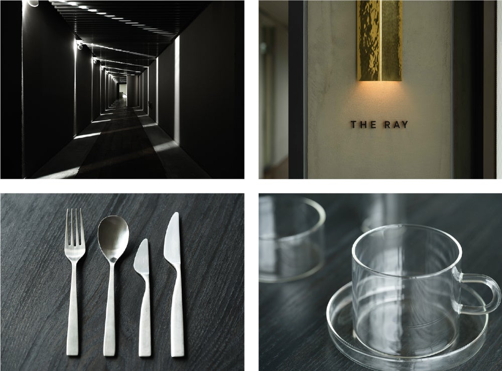 「THE RAY」の店名にもあるように「一筋の光」をテーマにレストラン全体をデザイン。新しい料理体験に向き合えるよう、限りなく無駄な要素を排除し「削ぎ落とす美学」を徹底した空間設計で、五感<味覚・聴覚・視覚・嗅覚・触覚>を研ぎ澄まし、料理の本質に深く向き合える食体験をお愉しみいただけます。