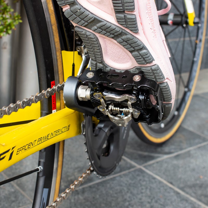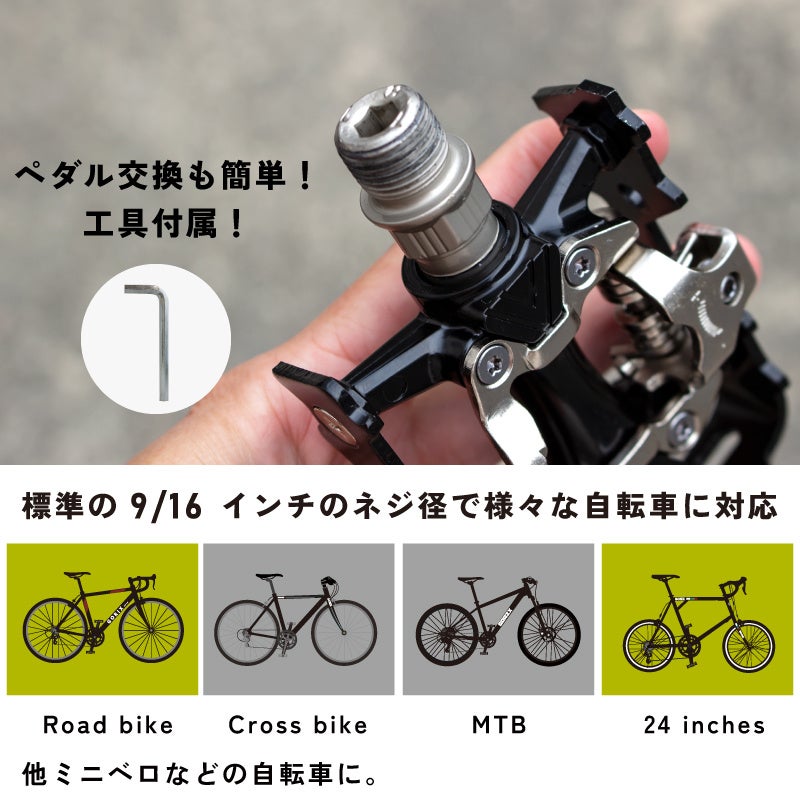 ビンディングペダルとフラットペダルを片面ずつ使えるマルチなペダルです。