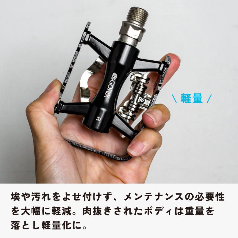 自転車パーツブランド「GORIX」の新商品の「片面フラットのビンディングペダル(GX-PMS106)」は