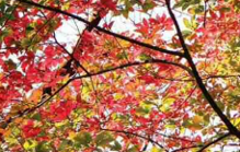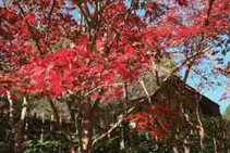 日本民家園にある古民家・佐々木家の周辺にあるイロハモミジ。民家園の園路や東口から中央広場に向かう手前の三叉路を西口方面へ少し登ったところでも綺麗な景色が広がっています。