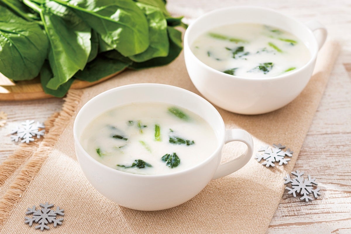 豆乳をベースにごまの風味が香る、ほうれん草たっぷりのスープです。