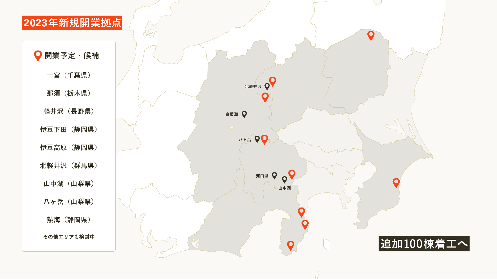 - 【新拠点発表】伊豆・軽井沢・那須などのエリアへ初進出、2023年追加100棟着工へ