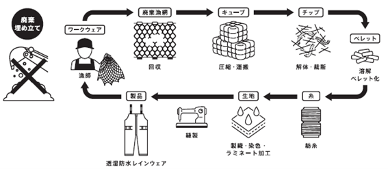 「ISPO Munich 2022」では、当社として2022年3月より始動した『BE EARTH-FRIENDLY -漁網アップサイクルプロジェクト-』をテーマとして、そのアップサイクルの過程を欧州でも共有し、廃棄漁網から再生した素材を活用し漁業関係者向けウェアをはじめ、柔らかな風合いのアパレルアイテムへと生まれ変わったセットアップやドレス、レインコートなどを展示。また、日本最大のファッション専門教育機関「文化学園」の学生が廃棄漁網リサイクル素材(REAMIDE®)を用いて製作したアイテムも展示予定です。