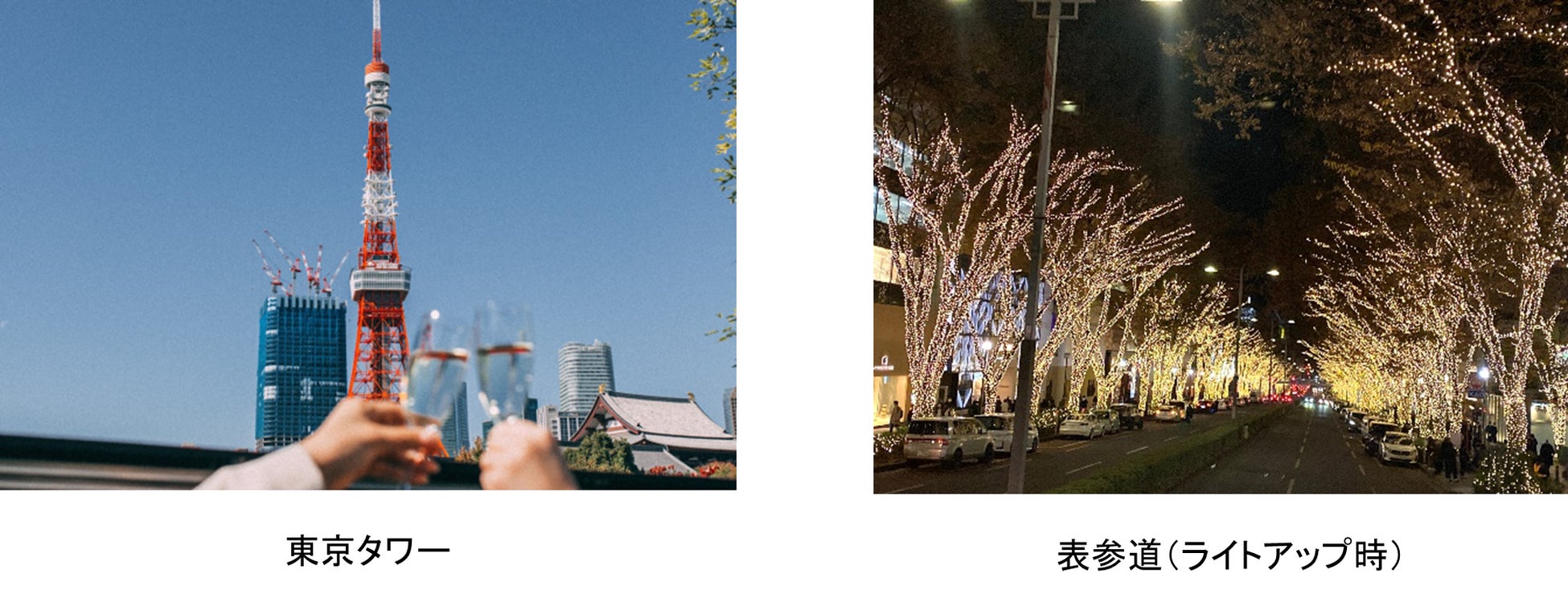 ① ランチコースは賑やかな東京の観光名所を約2時間30分、ディナーコースは東京の観光名所とライトアップされた幻想的なイルミネーションを約3時間お楽しみいただけます。