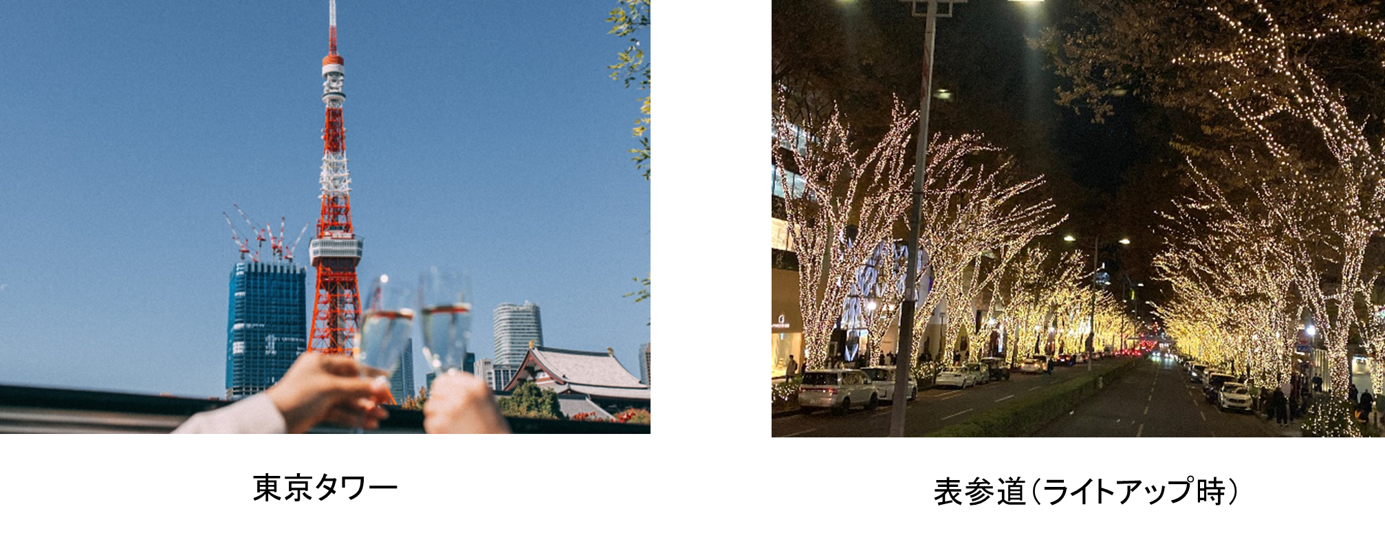 ① ランチコースは賑やかな東京の観光名所を約2時間30分、ディナーコースは東京の観光名所とライトアップされた幻想的なイルミネーションを約3時間お楽しみいただけます。