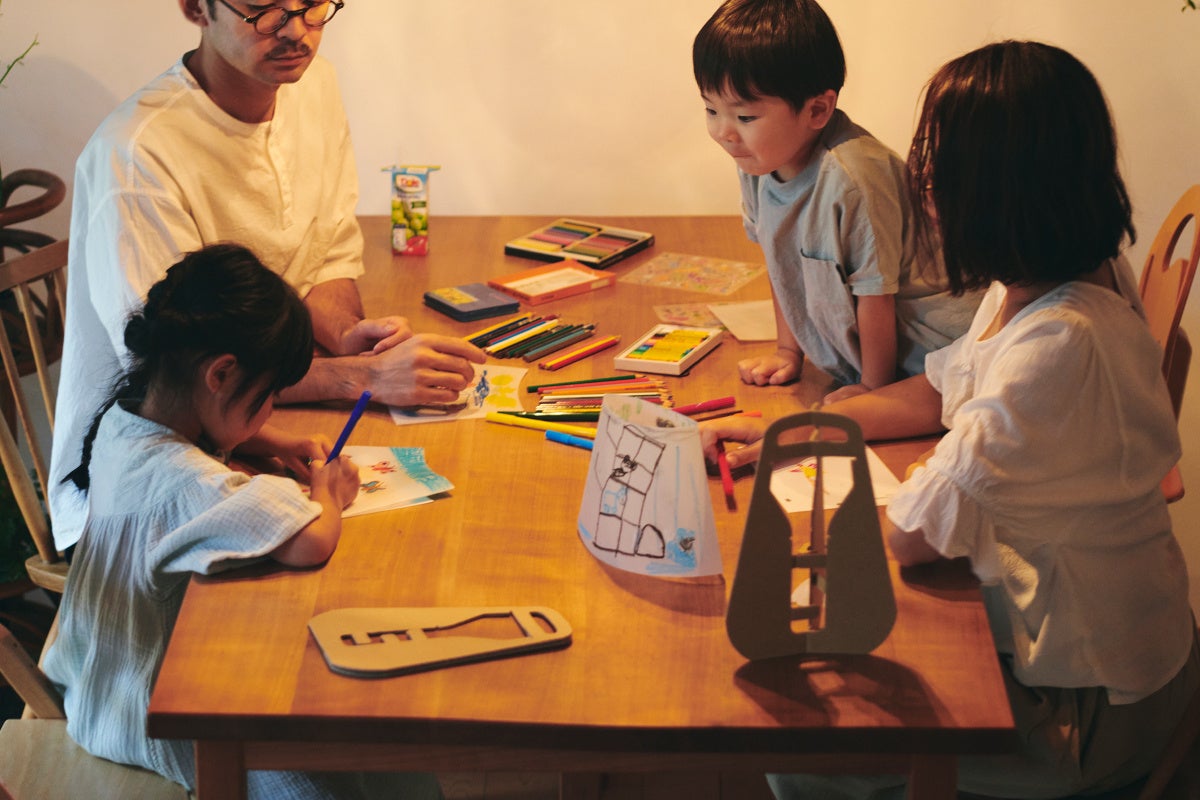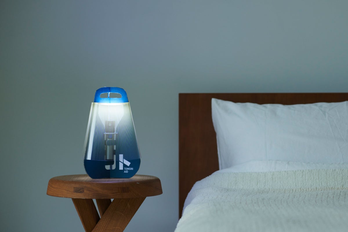「TOMORI AID(トモリエイド)」はデザイナー自らの避難体験から生まれた、組立てて懐中電灯をいれる事で直線的な光をランタンの様な周囲を照らす光にできる折り畳み式段ボール製照明キットです。「避難時に防災バッグに入れて持ち運べる携帯性」と「飾りたくなるデザイン性」を兼ね備えた、普段使いもいざという時にも役立つあかりです。