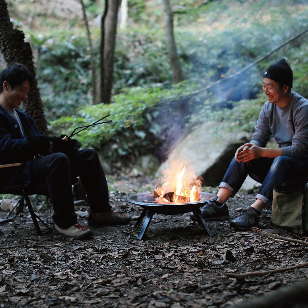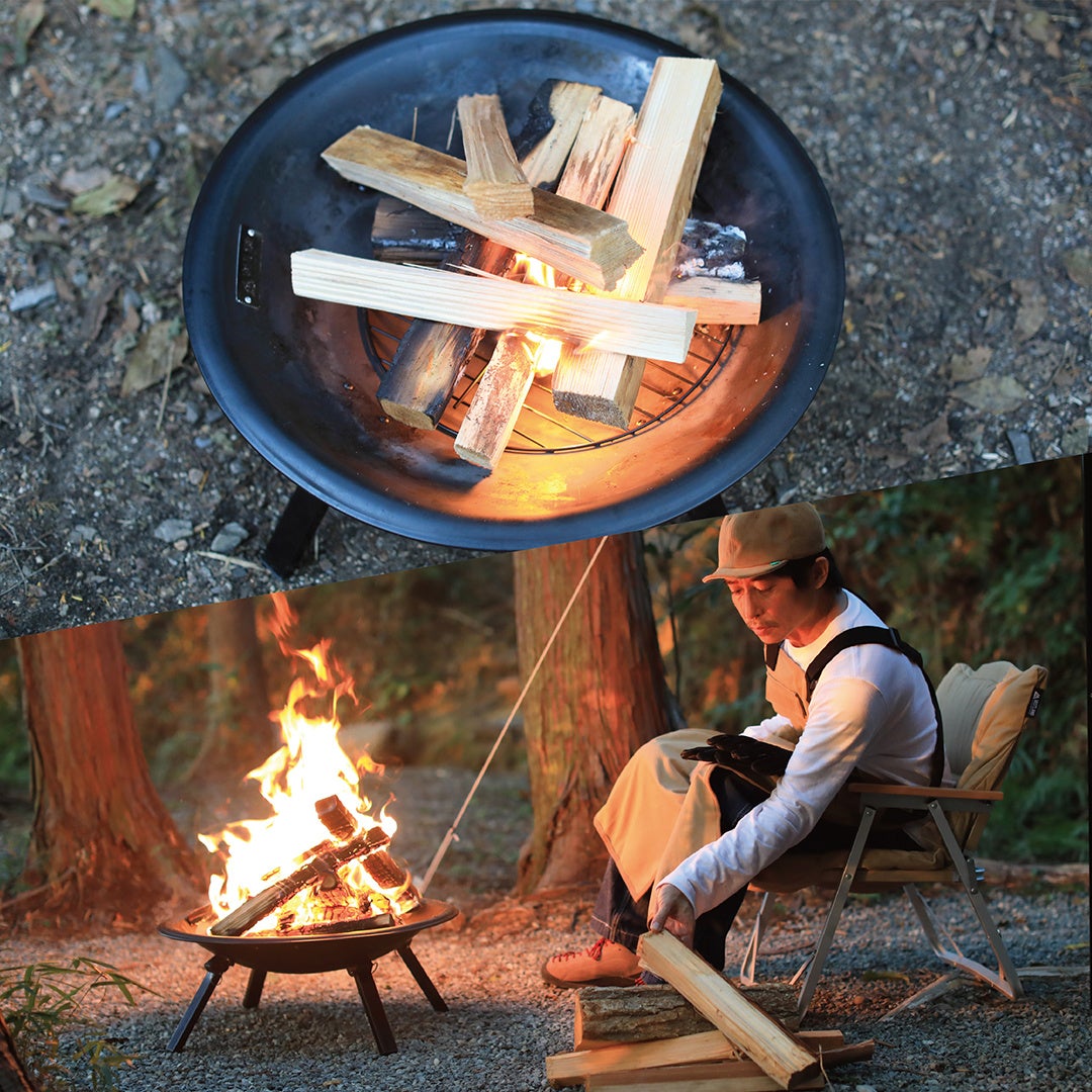 また焚き火台本体が浅く左右対称で、全方向から炎が眺めやすく、複数人での焚き火に適しています。