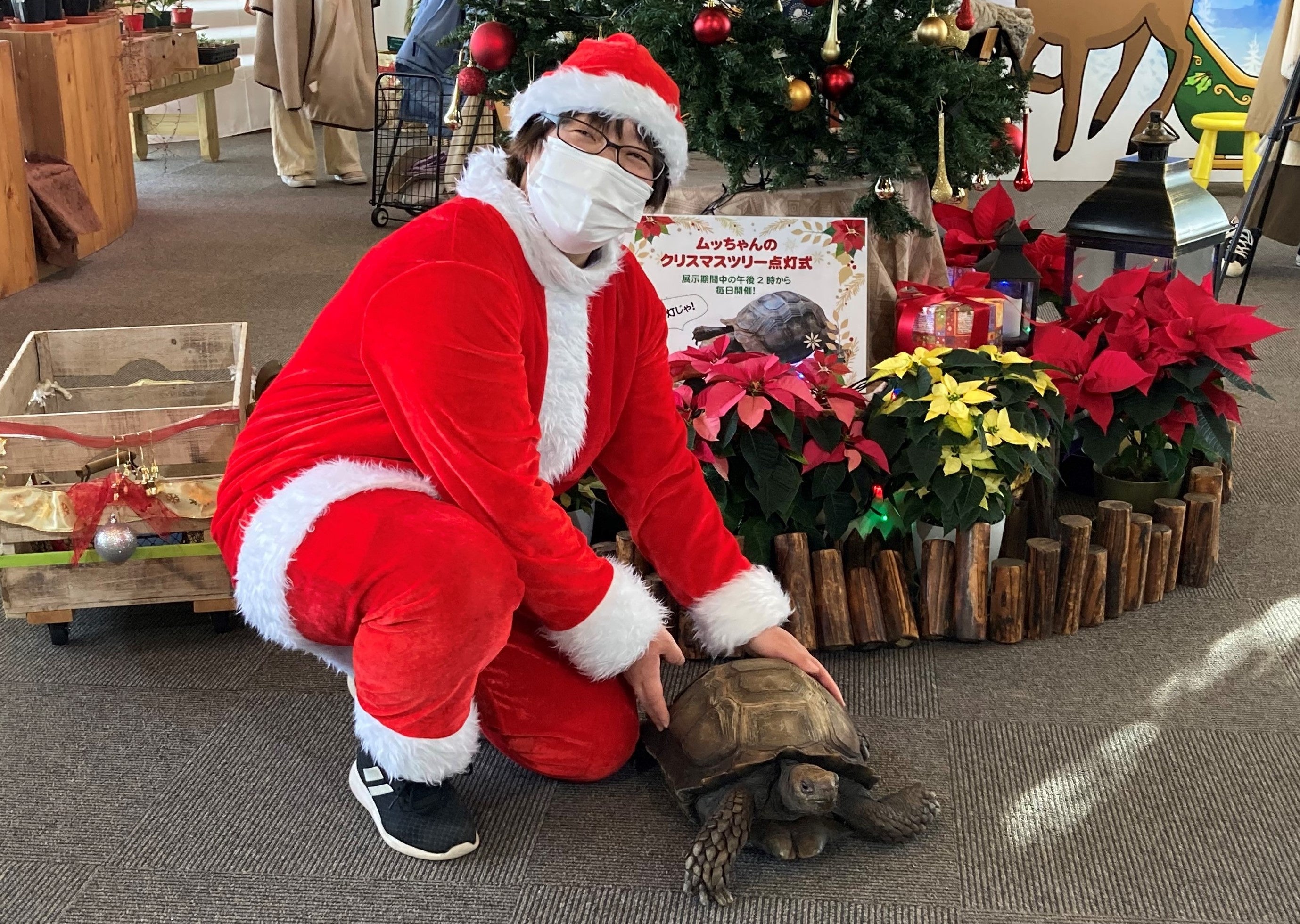 “ムッちゃん”の愛称で親しまれている人気者のリクガメと、サンタクロースに扮した当館スタッフによる点灯式を、期間中の土日・祝日に開催します。