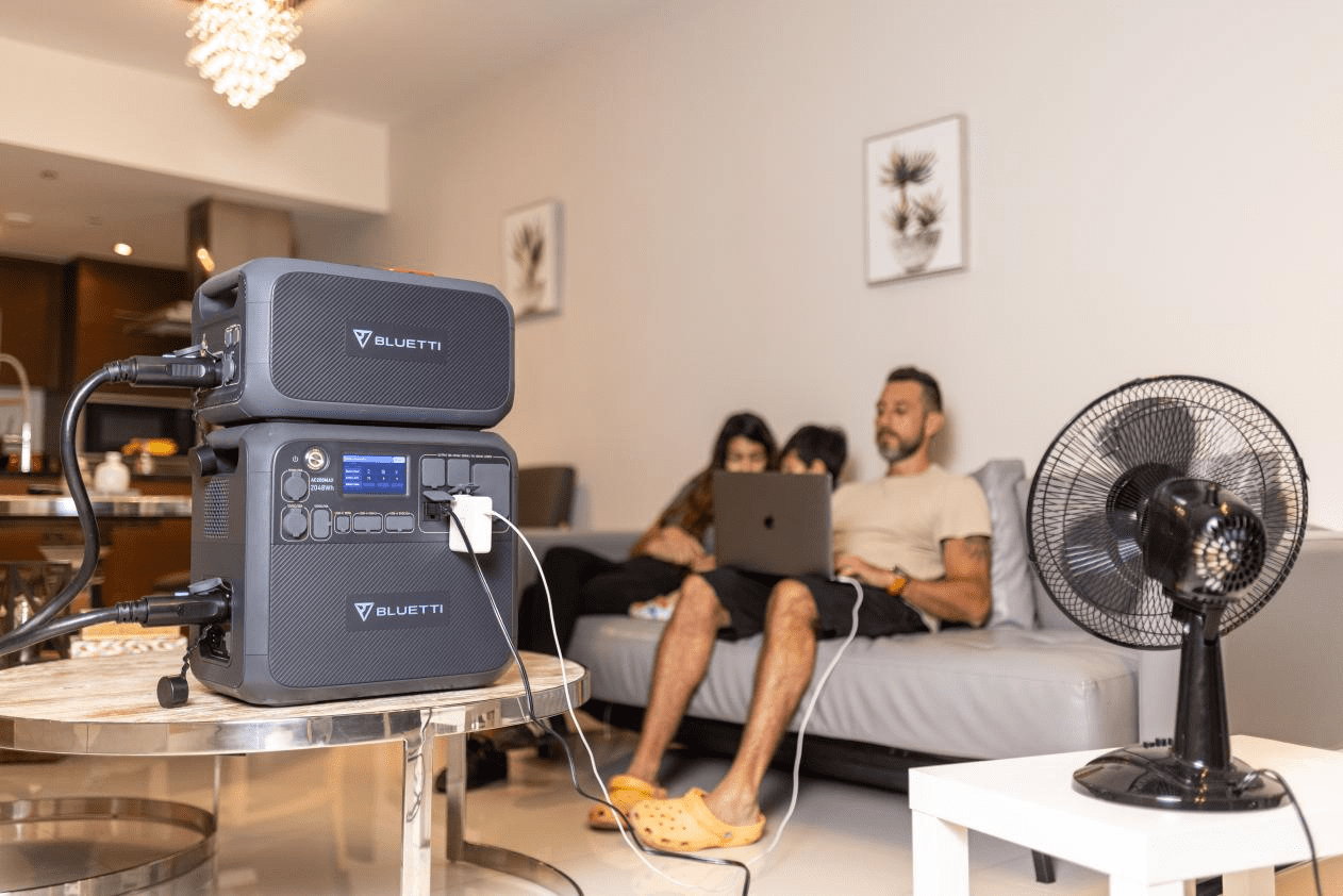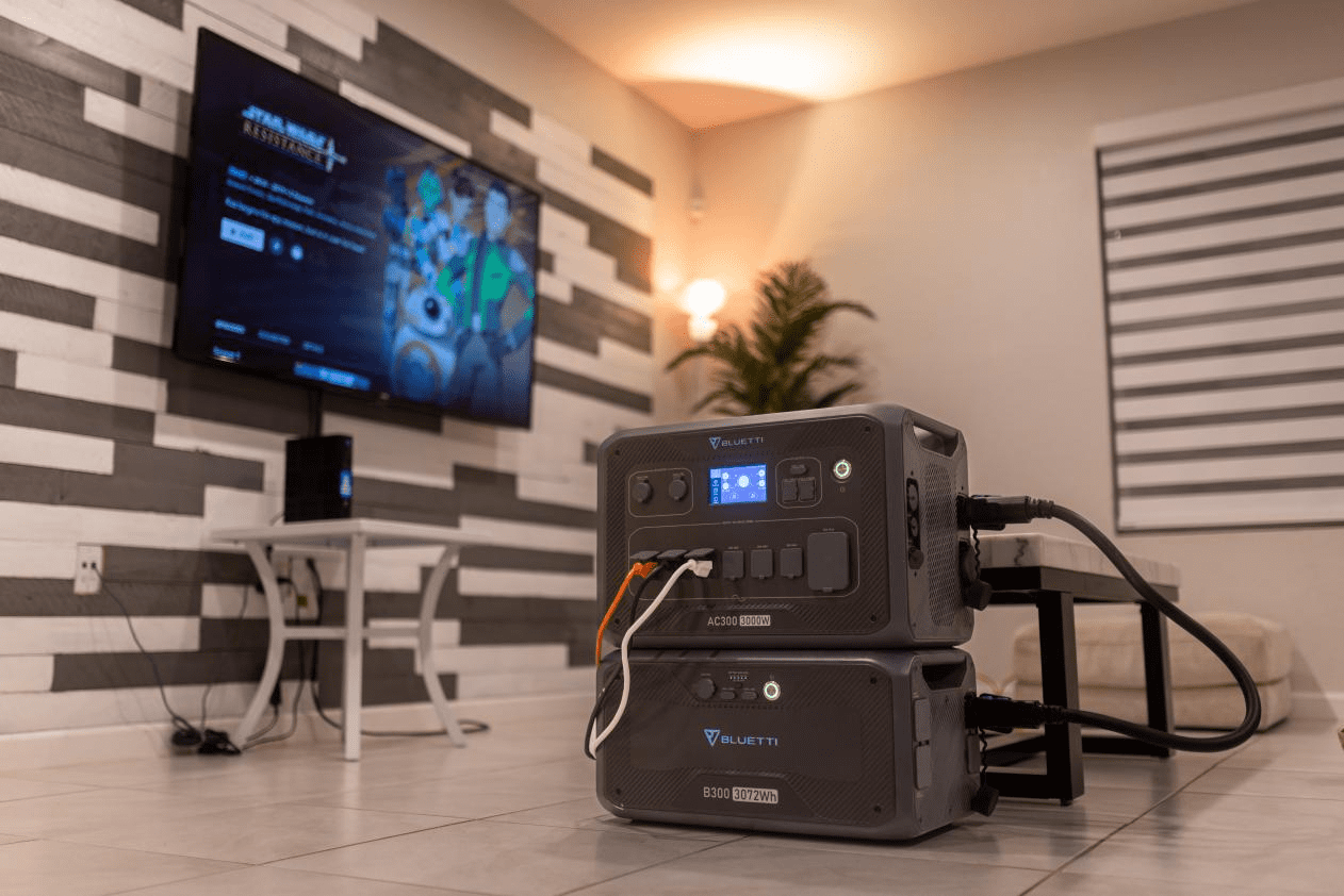 モジュール式のAC300は、3000Wのインバーターを搭載し、3072WhのB300(拡張バッテリー)と組合せて使用します。3072WhのB300を4台接続すれば、12288Whという圧倒的な容量になります。キャンプやアウトドアはもちろん、家庭のバックアップ電源としても活躍します。