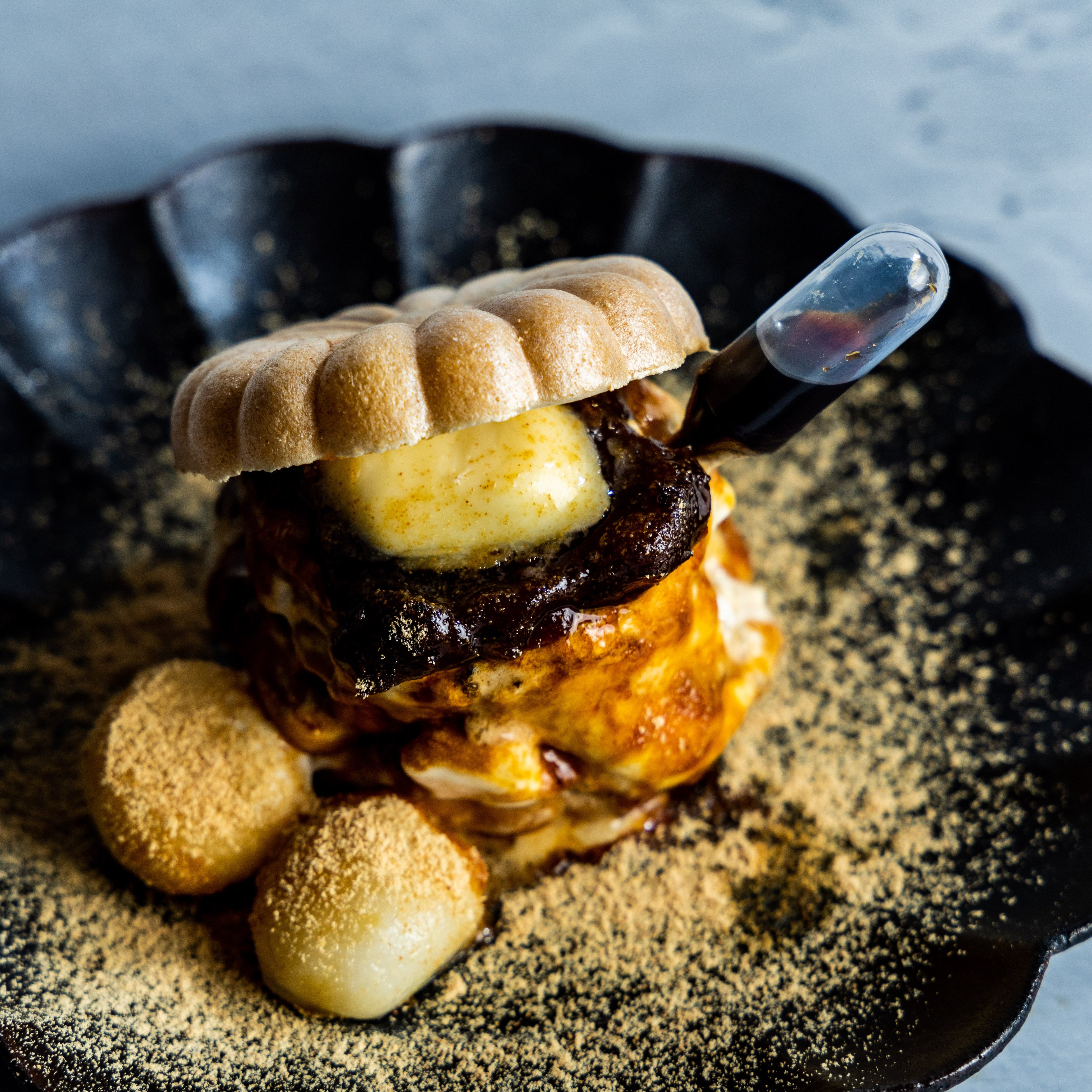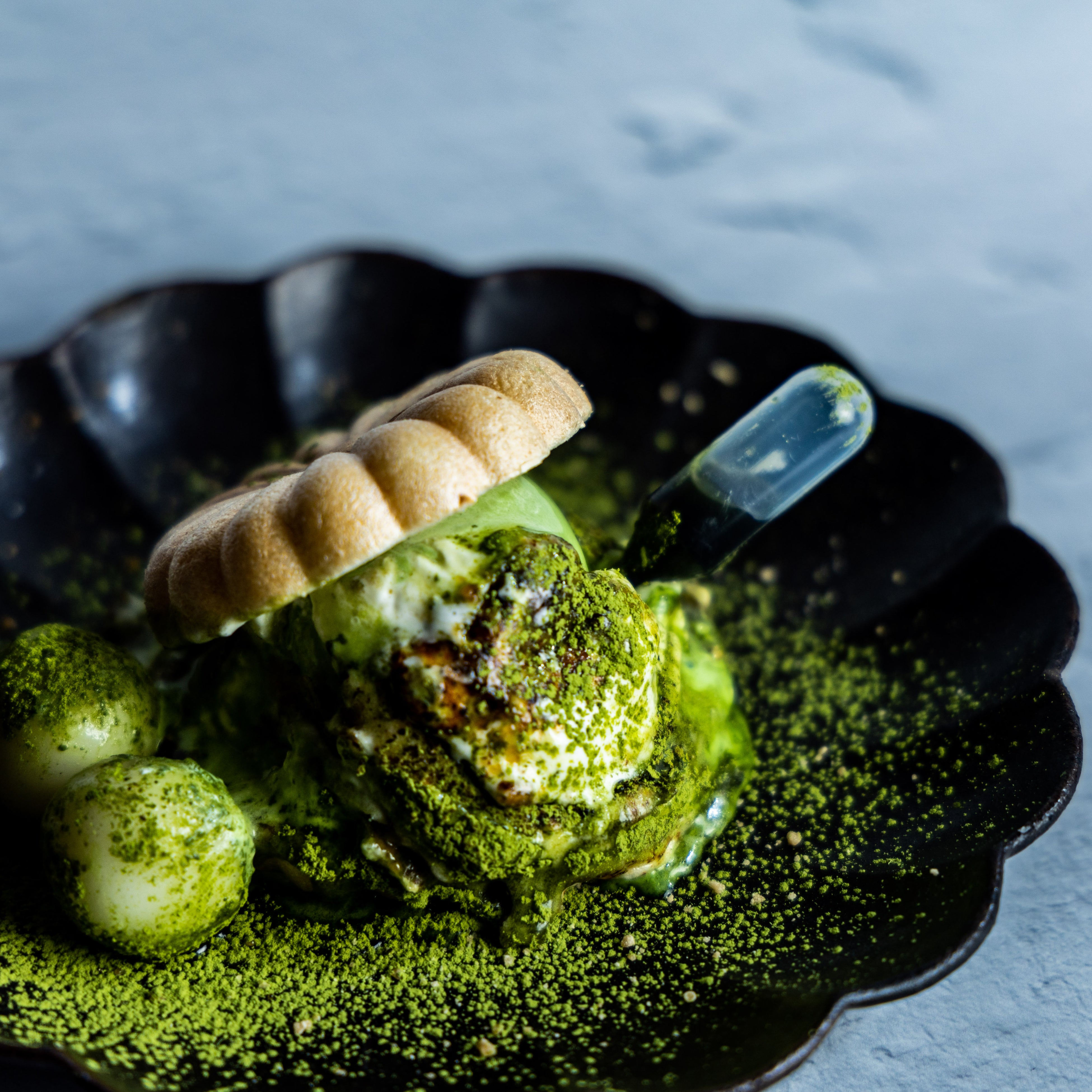 抹茶ブラウニー・抹茶アイス・抹茶ソース・ラスク・黒蜜・モナカ・白玉・ホイップ