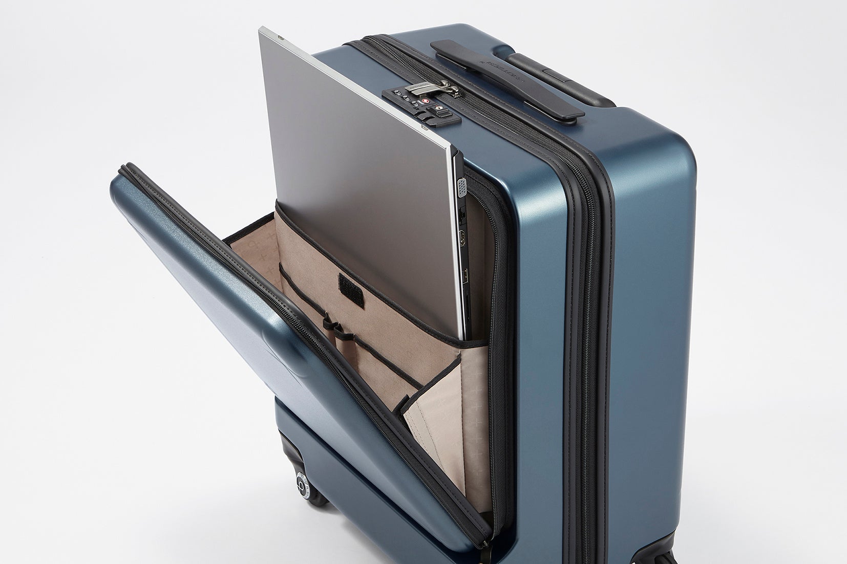 機内持込みサイズ40Lという最大級の容量を実現したスーツケース。体感音量を大幅に削減した「サイレントキャスター®」に加え、滑らかな走行を実現する「ベアロンホイール®」を装備しており、快適な移動をサポートします。また手元スイッチで簡単に車輪を固定できる、独自開発・特許取得の「マジックストップ®」を搭載し、電車内などでの不意な走行を防ぎます。フロントポケットには13inchPCやA4クリアファイルを収納可能。旅行はもちろん出張でも活躍します。
