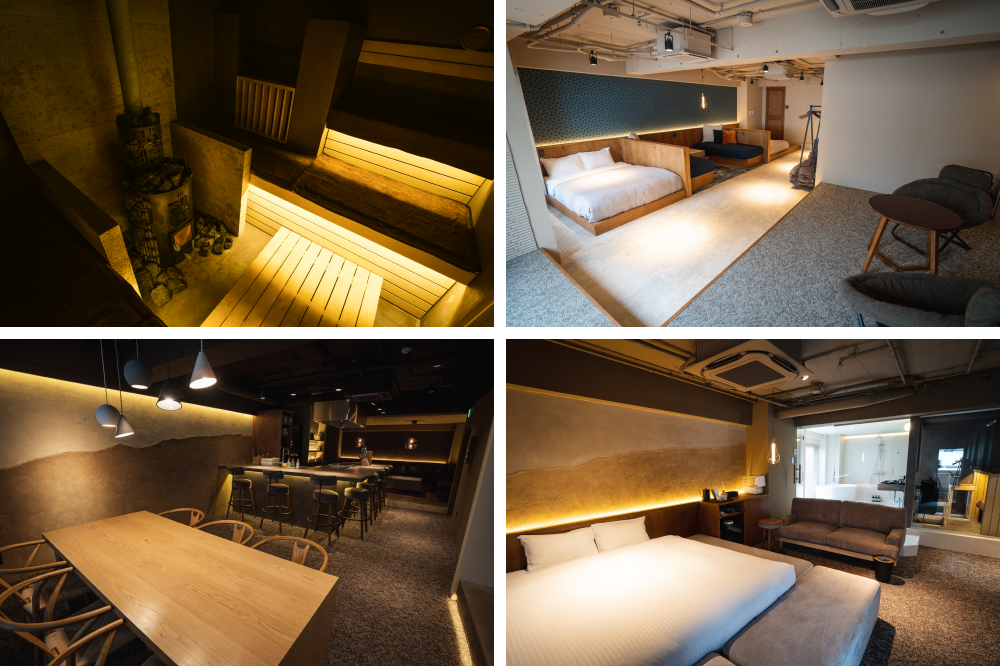 2022年7月に雑誌『サウナランド』とのコラボで誕生した4階建てサウナ施設。1階のパブリックサウナは、都内では珍しい薪ストーブを採用。電気ストーブ併用で、柔らかな熱に安定感を加えた見事な空間に。目の前にはチラーで冷やされた水風呂と温かいお湯風呂の2種の浴槽を完備。2階のキッチンダイニングラウンジでは、お酒を飲み浅草名物もんじゃ焼きをつつきながら、仲間と語らうことも。3階と4階には、1フロアに1室の設計のサウナ付きプライベートルームもあり。コロナ禍で失われていた「仲間と共に過ごす時間」を取り戻せる自由で楽しいサウナ。