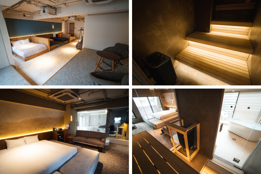 tyro社のストーブを使用したフィンランド式サウナを導入し、水風呂もチラーで15℃前後に冷やすことでホテル客室とは思えないサウナをご用意しています。