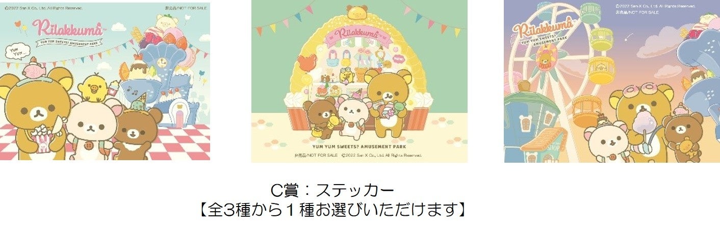 全て集めてゴールするとオリジナルノベルティ(「リラックマと遊園地」ポストカード3種セット)をプレゼントします。