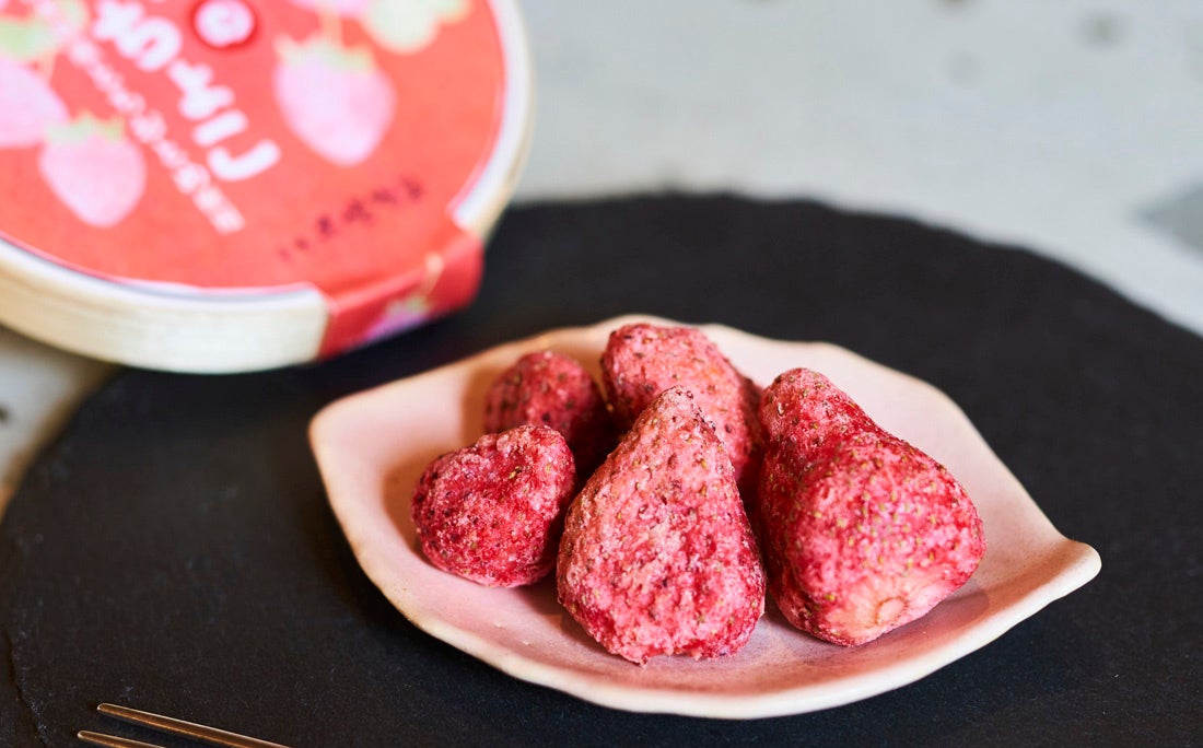 <特徴>とちおとめの中にホワイトチョコレートを染み込ませたドライタイプのお菓子