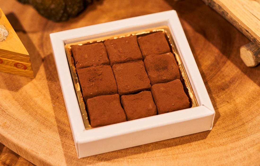 <特徴>日光産の山椒の実と葉を使用し、たまり醤油を隠し味にした日光を感じる生チョコ
