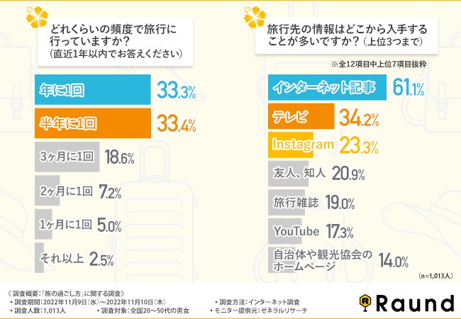 旅行に行っている頻度や、旅行先に関する情報収集の方法などが分かりました。