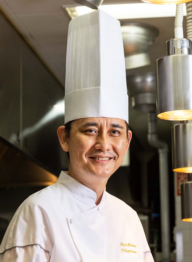 1970年 愛知県生まれ。23歳で渡仏、本場のフランス料理を各地で学び、東急ホテルズの旗艦ホテルであるセルリアンタワー東急ホテルに入社。技術研鑽のため、料理コンクールにも積極的に出場し、グランプリをはじめ多数入賞後、40階メインダイニング「クーカーニョ」のシェフを9年間務める。2018年 渋谷ストリームエクセルホテル東急 料理長、2021年9月 横浜ベイホテル東急 メインキッチン シェフを経て、現職。