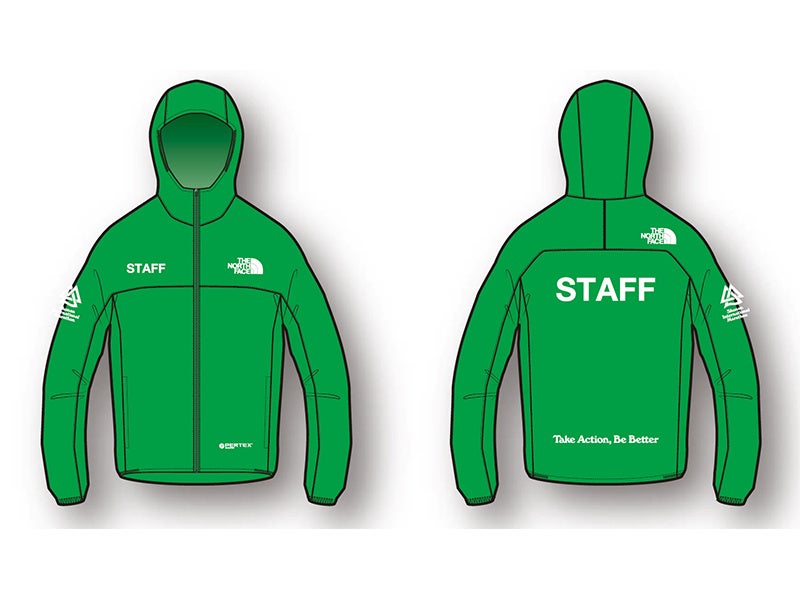 また、ゴールドウイン及びTHE NORTH FACEは、大会期間中に特設ブースを設け、レース参加者及び来場者より不用になったTシャツを回収する取り組みを行います。それに加え、継続的に店舗のリサイクルボックスなどでも回収している不用となったウェアと共に再資源化したポリエステルを使用し作製した参加者記念Tシャツを提供します。