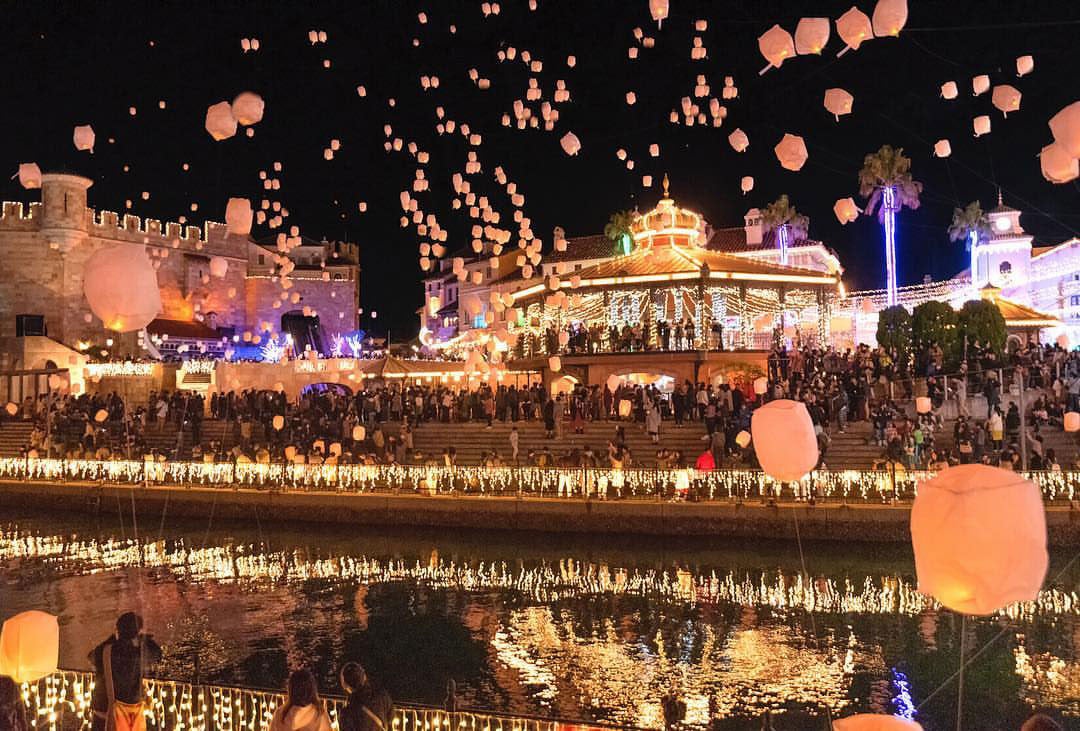 昨年、一昨年と大好評の「スカイランタンフェス」を、今年は11月19日からの土曜に3週連続開催します。800個のランタンが一斉に放たれた瞬間、お城を抱くヨーロッパの街並みを借景にした冬の夜空に無数のランタンが浮かぶ、夢のような世界が現れます。前回はイベント前に完売するほどの人気だったこのイベント。ぜひお早めにチェックしてください。11月19日、26日のスカイランタンフェスは天気にも恵まれ、盛況のうちに終了しております。