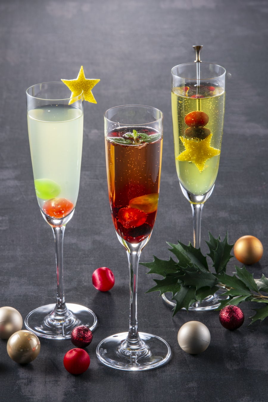 ディナーに添えてクリスマスナイトのテーブルを彩るのは、クリスマスにぴったりなカラーのカクテルです。