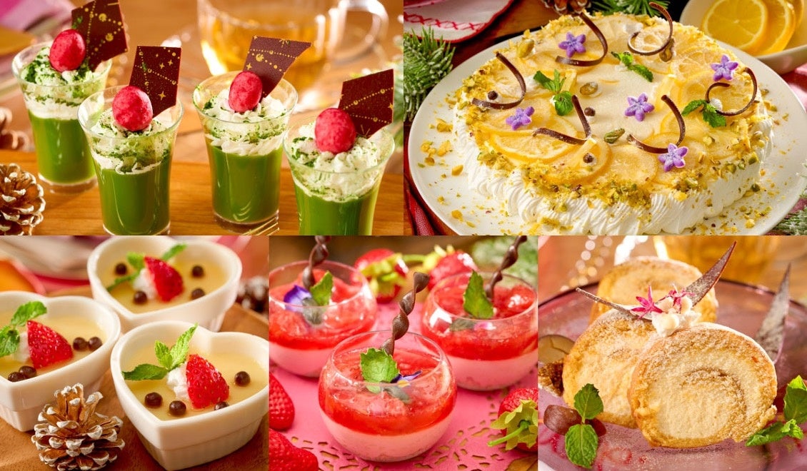 定番人気の「レオマのプリン」や、濃厚な甘さがワインのお供にもぴったりのパティシエ自信作「オペラ風チョコレートケーキ」の他にも、クリスマスシーズン限定の「クロカンブッシュ」も登場いたします。