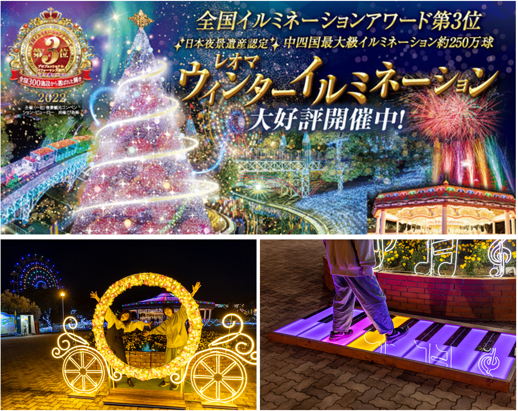 - 1. 【楽】第10回イルミネーションアワード プロフェッショナルパフォーマンス部門第3位受賞!* レオマ光ワールドのイルミネーション、「レオマウィンターイルミネーション2022」