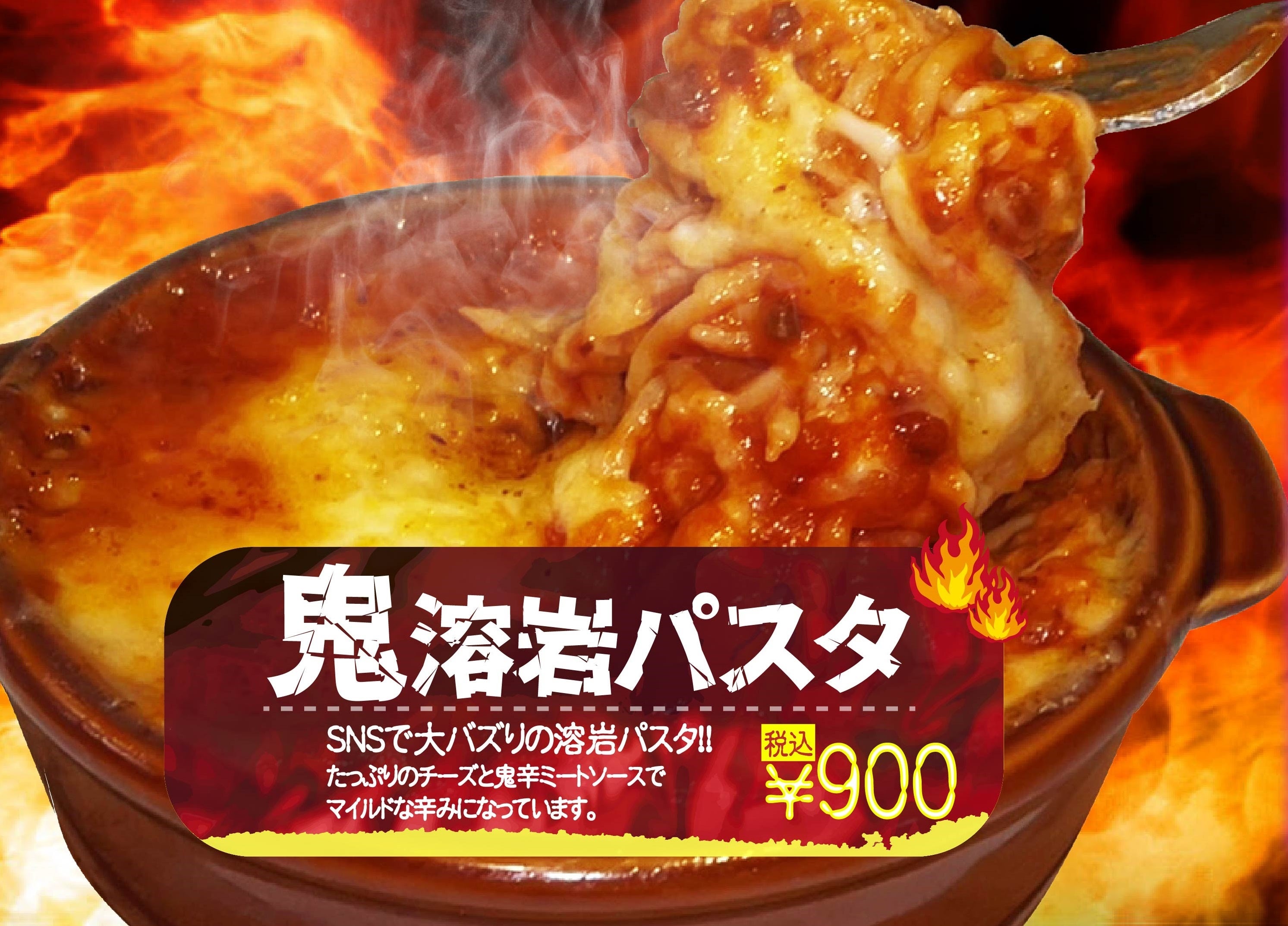 SNSでも大バズりの溶岩パスタたっぷりチーズと鬼辛ミートソースでマイルドな辛みになっています。