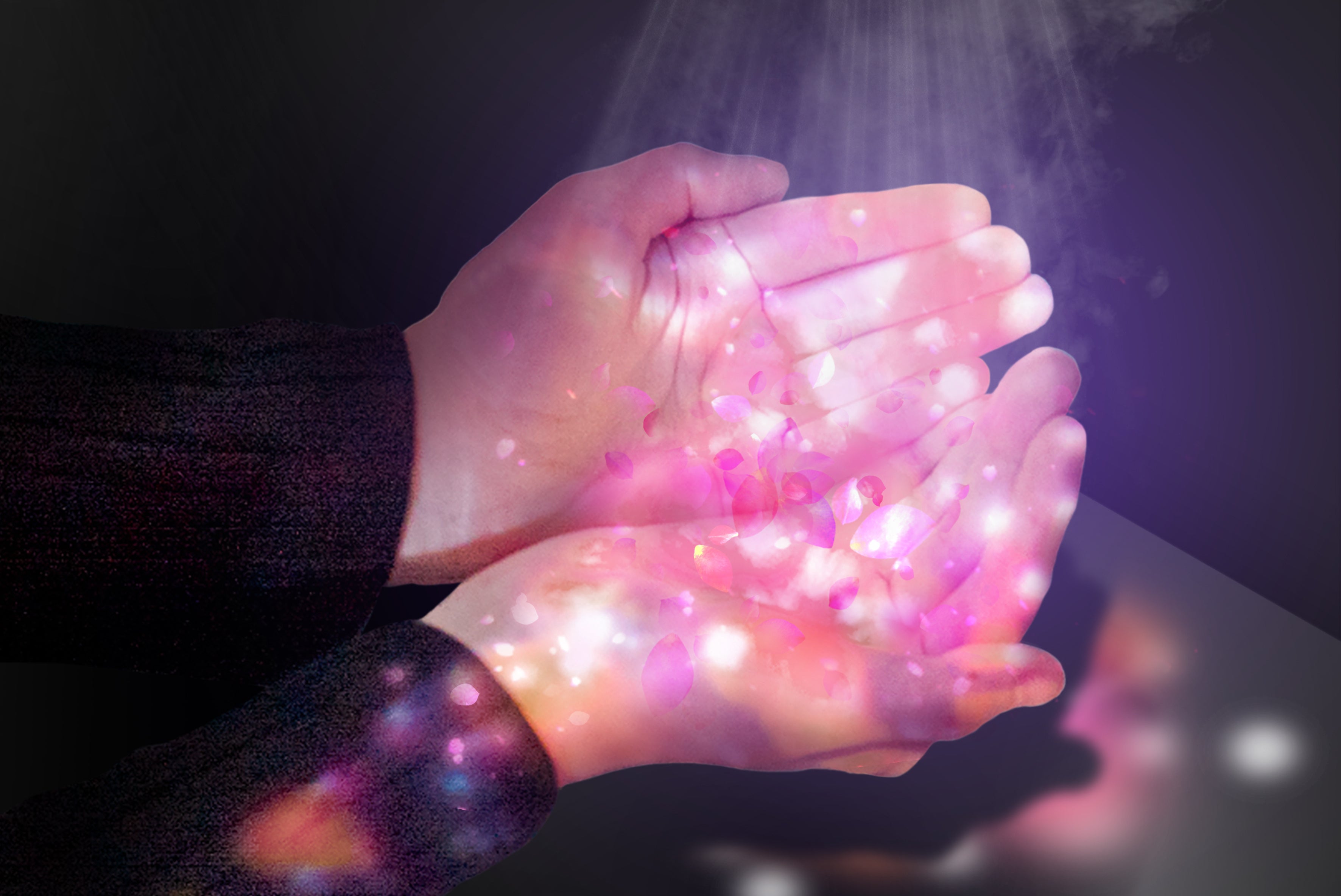 手を差し込むとアルコール除菌液と共に、光の花が手のひらに映し出される感染症対策アート。茶室に入る前に手を清める「蹲(つくばい)」のイメージ。
