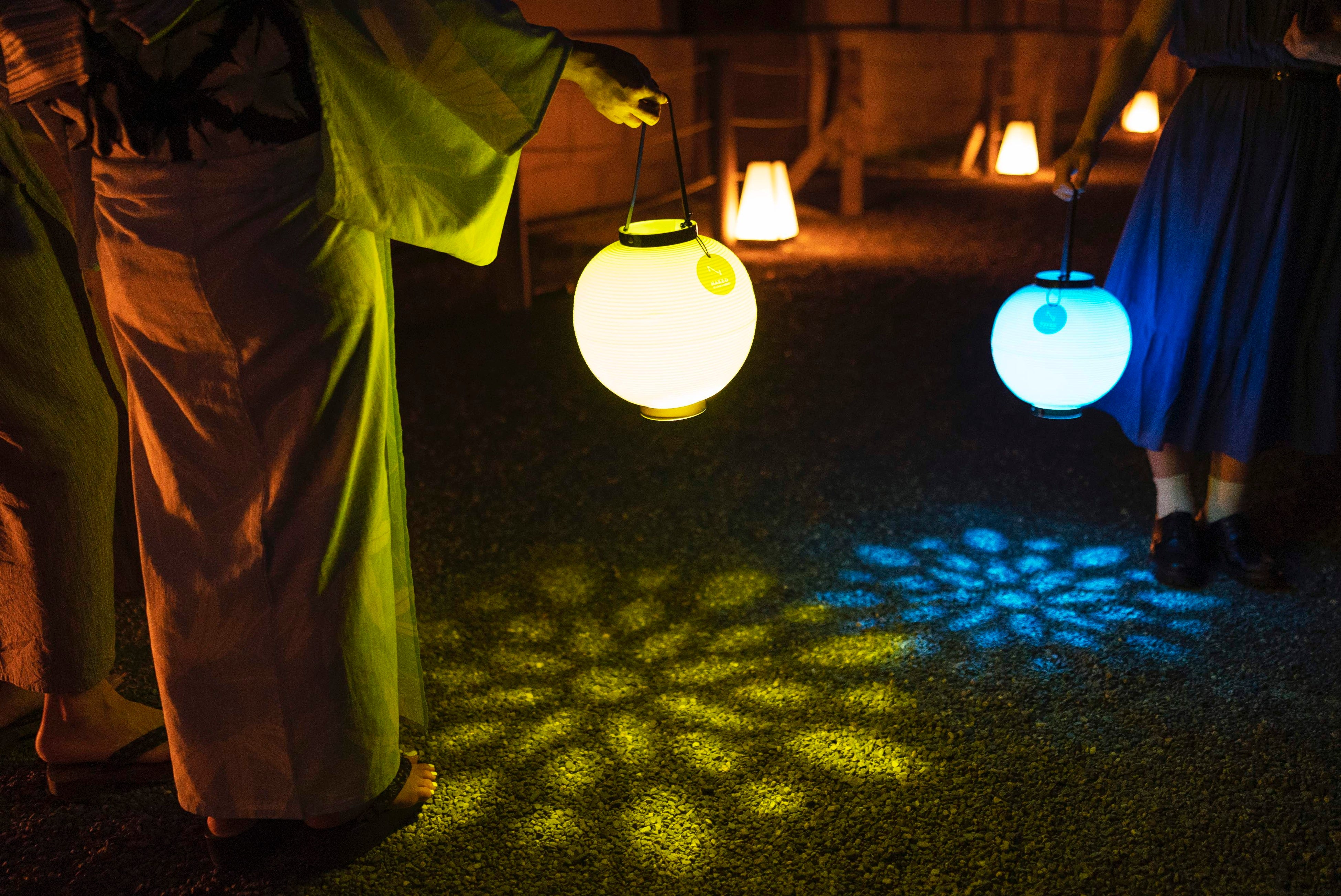 光の演出で、自然にソーシャルディスタンスをとれる参加型アート。夜の平戸城下まちを楽しく、安全にさんぽすることができる。