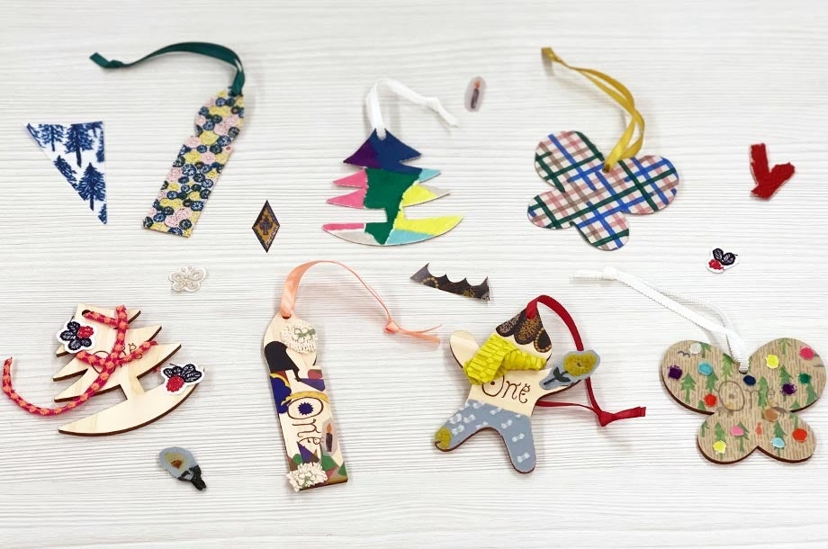 <ミナ ペルホネン>の生地などを使って、世界でひとつのオーナメントを<ミナ ペルホネン>テキスタイルデザイナー田中景子氏と制作するワークショップ。