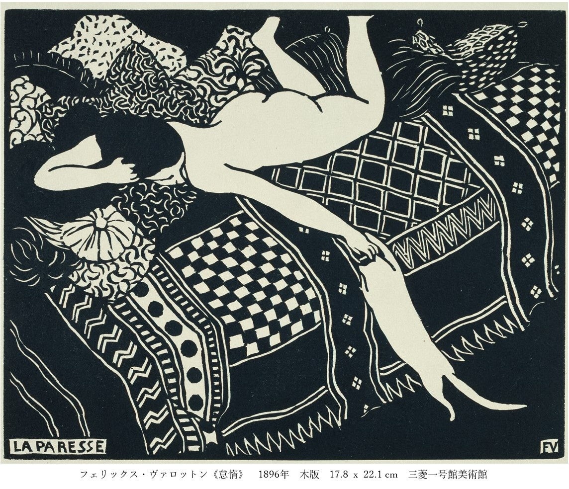 19世紀末パリで活躍したナビ派の画家フェリックス・ヴァロットン(1865-1925)は、黒一色の革新的な木版画で名声を得ました。独特の視点と多様な表現、そして卓越したデザインセンスをもつヴァロットン作品は、まるで解けない謎のように今でも私たちを魅了してやみません。中でも真骨頂ともいえるのが、木版画です。