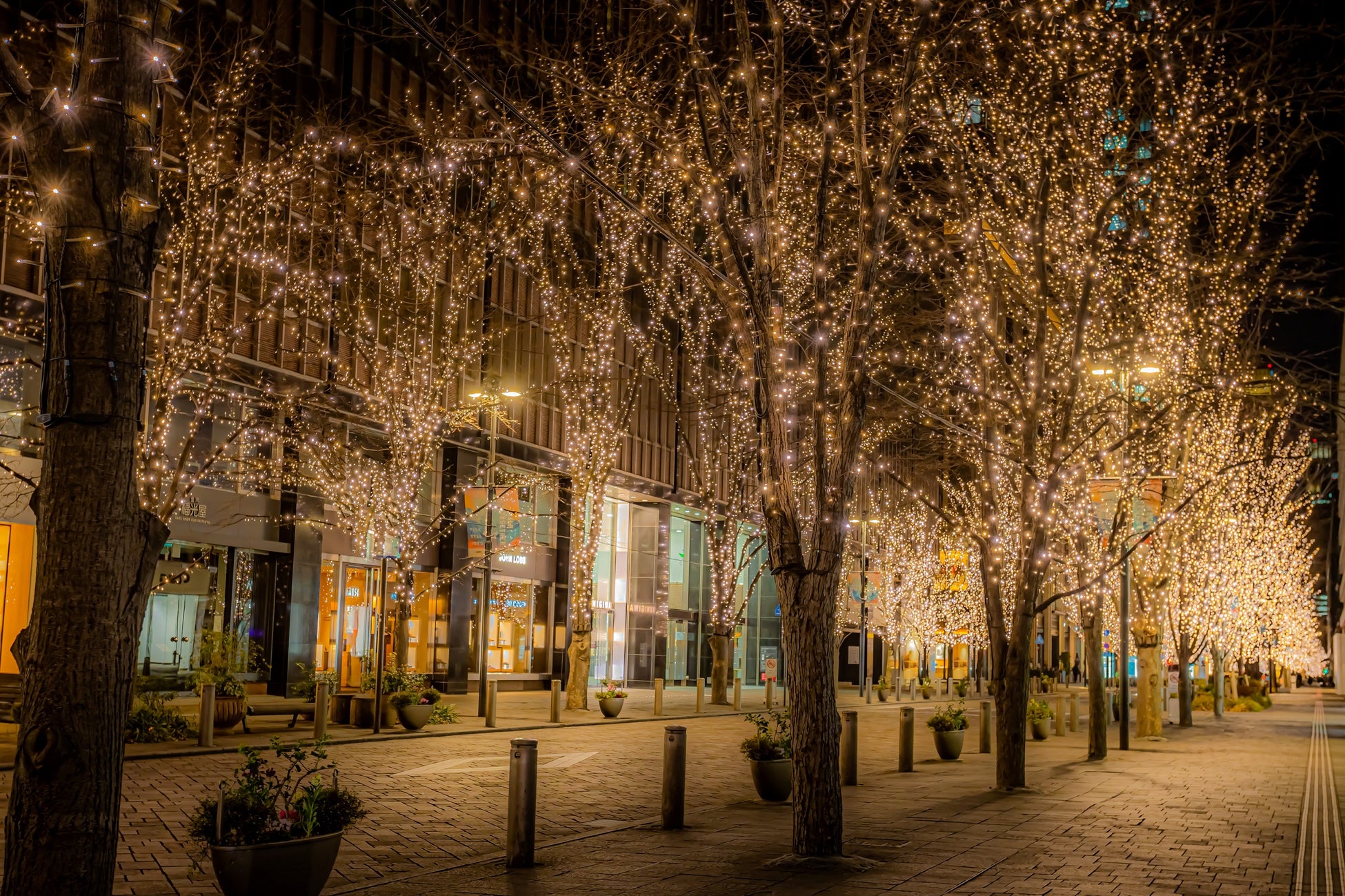 現在丸の内エリアでは、今年で21年目を迎える恒例イベント「丸の内イルミネーション2022」を実施しています。約1.2km におよぶメインストリート・丸の内仲通りを中心に、有楽町駅前の東京交通会館から大手町仲通りまで丸の内エリア内340本を超える街路樹が、シャンパンゴールド色のLED約120万球で彩られます。