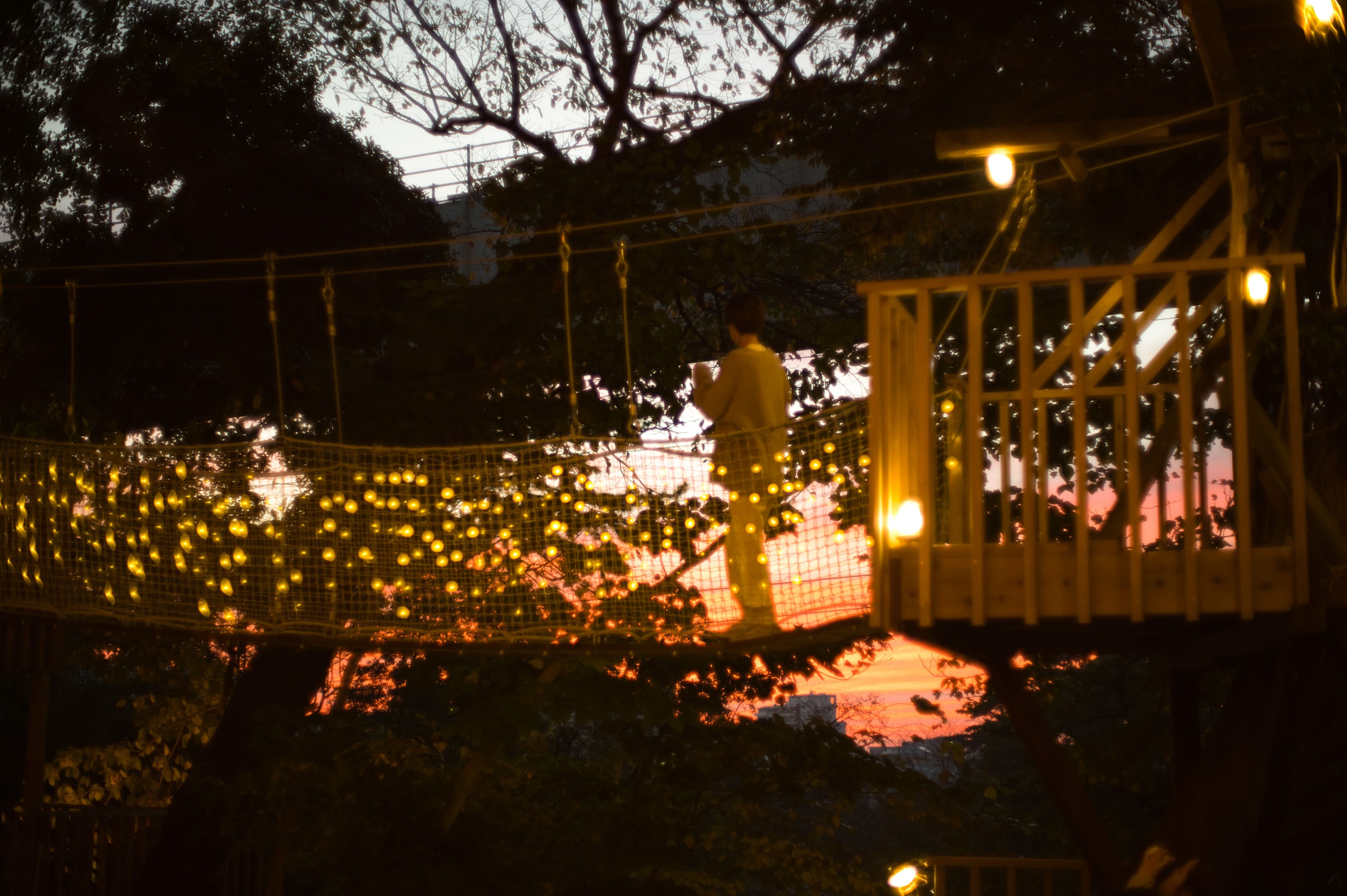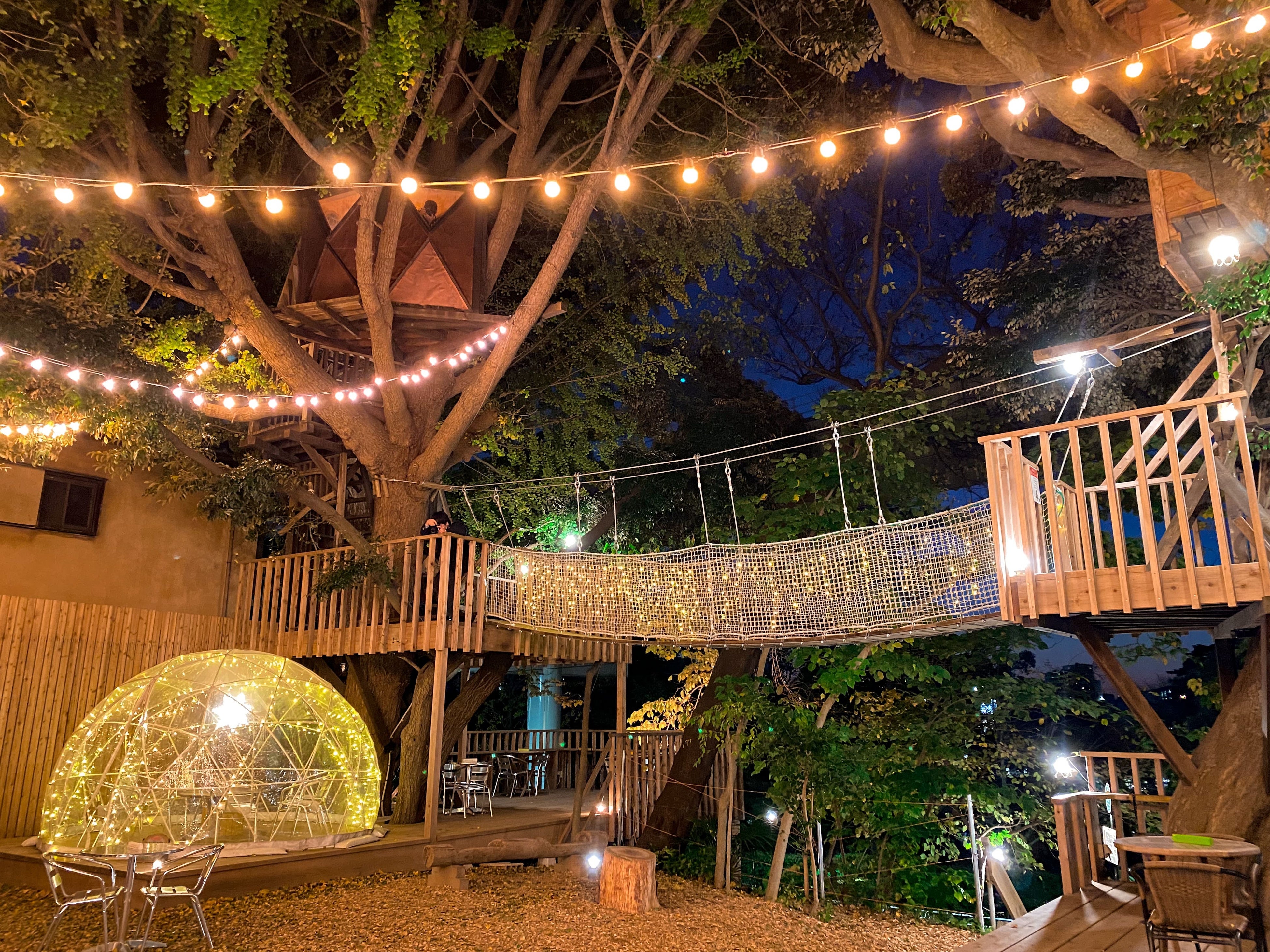 イチョウの木のツリーハウス「アルボ」または貸し切り専用テント「SPACO」を1時間貸し切ってお食事を楽しめます。